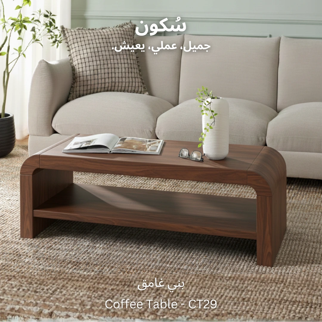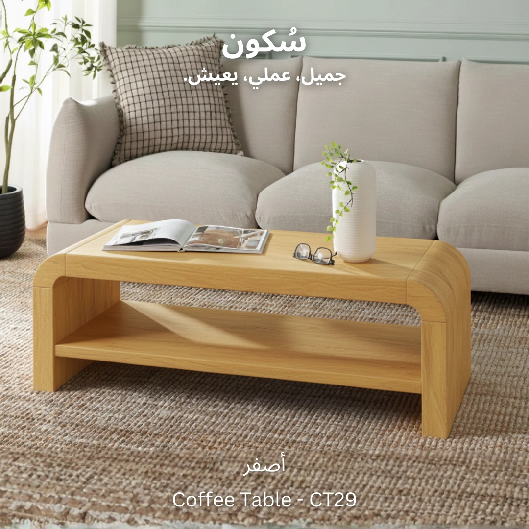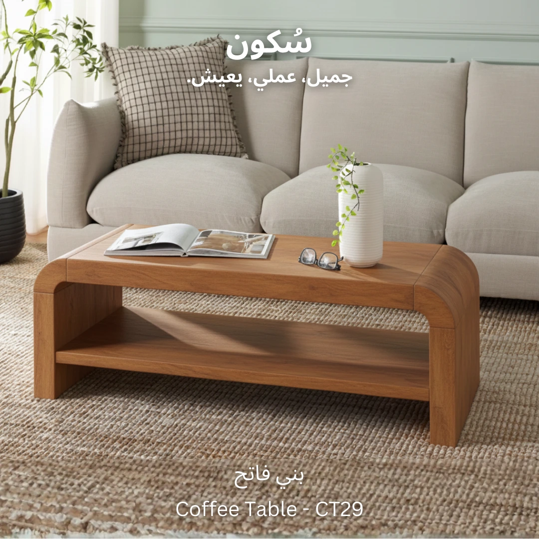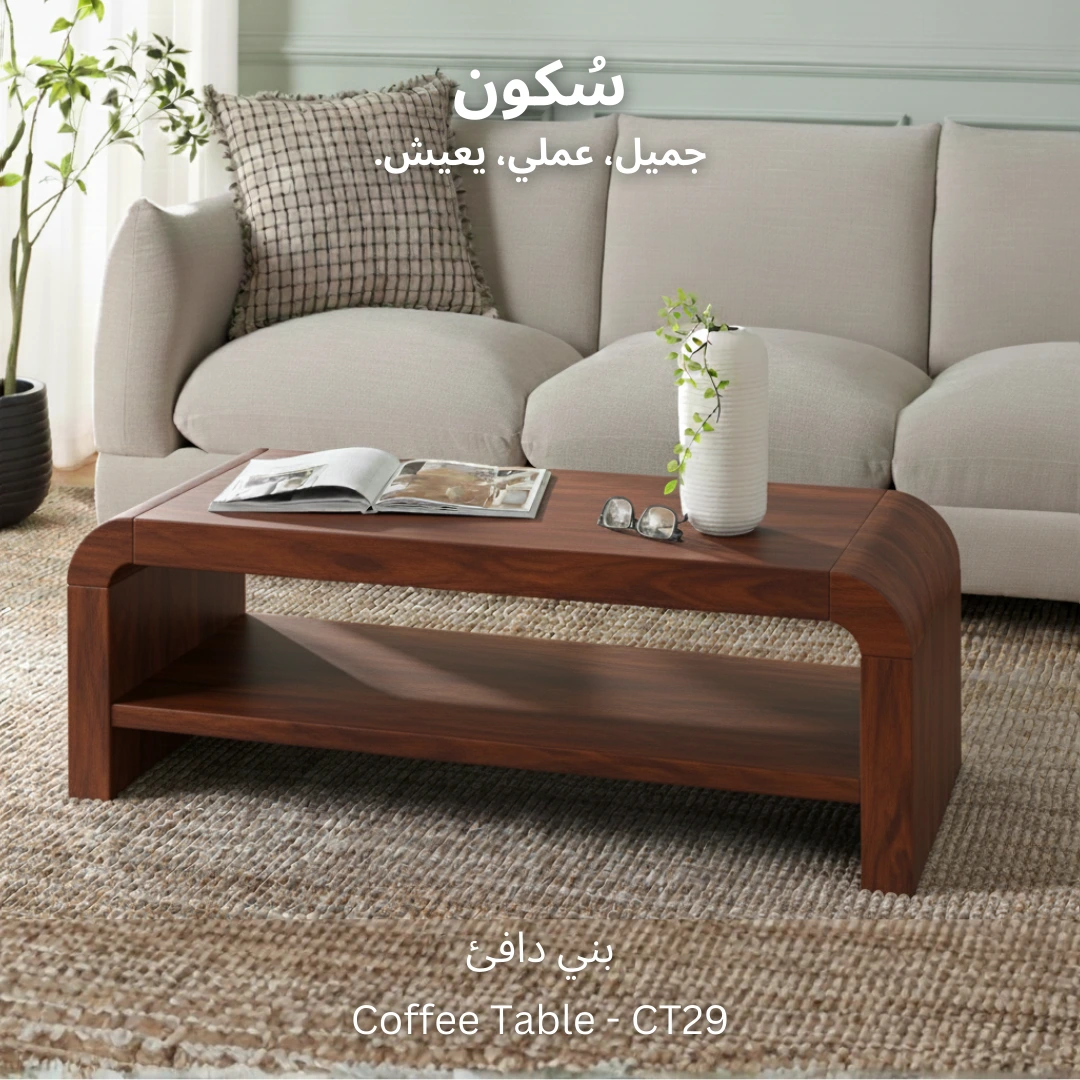 ترابيزة قهوة عملية وعصرية، مع رف سفلي مثالي لترتيب الكتب، المجلات، أو عرض القطع الديكورية الصغيرة.
