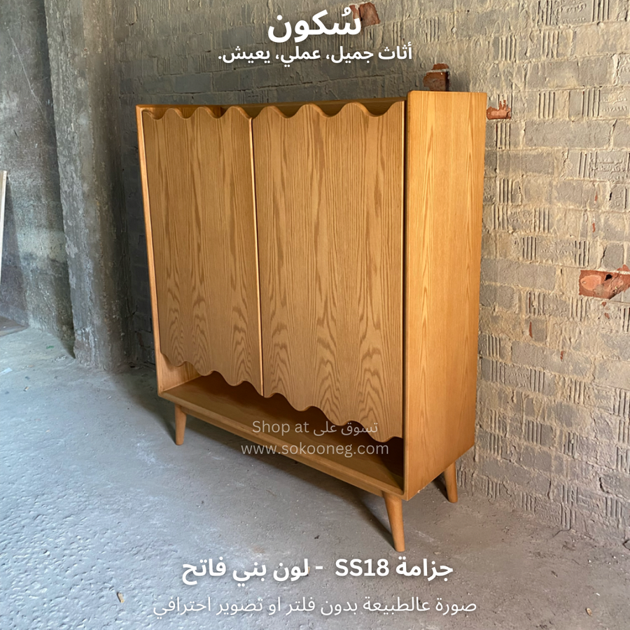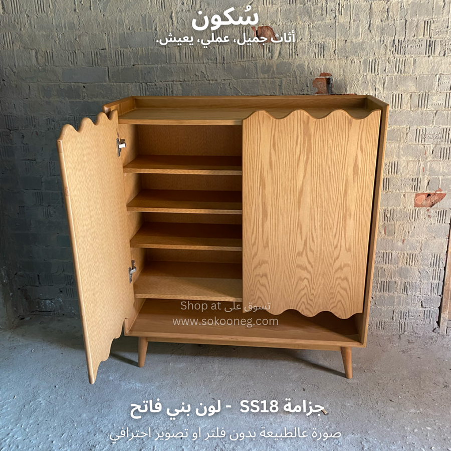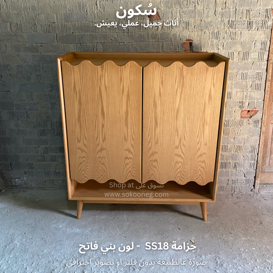 جزامة أنيقة ب ٢ درف من الخشب الطبيعي، تجمع بين التصميم العصري والوظيفة العملية.