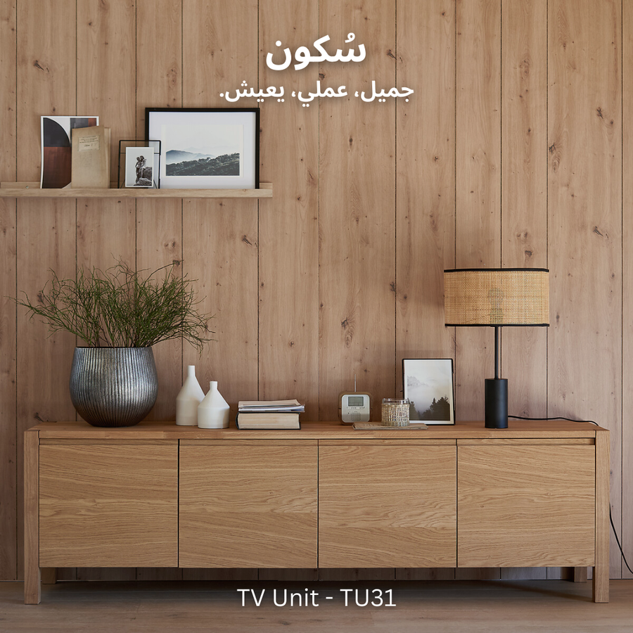 وحدة تلفزيون مع سطح واسع للاستخدام اليومي، تحتوي على ٤ باب لتخزين الأغراض.