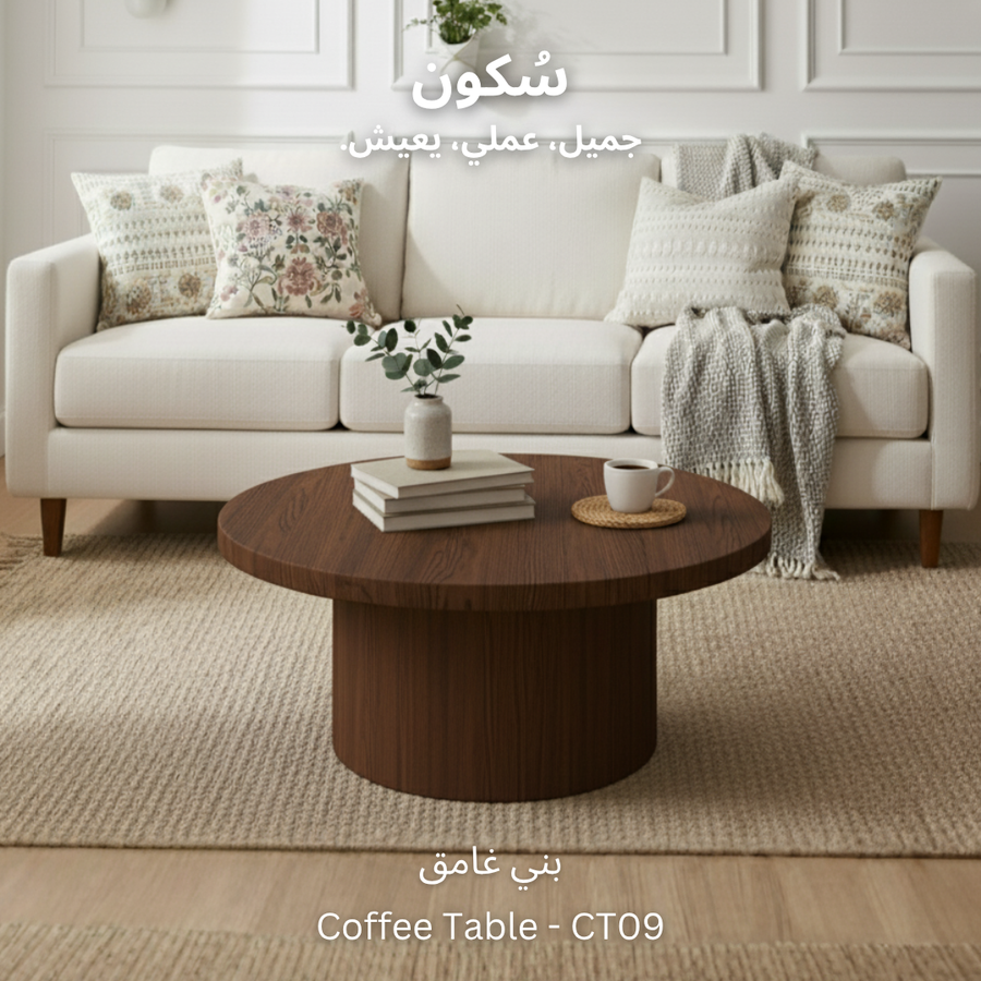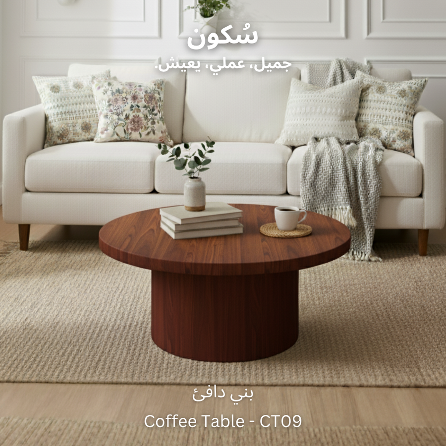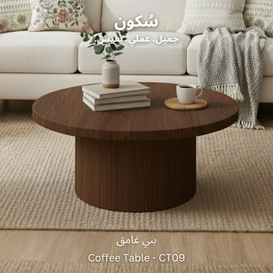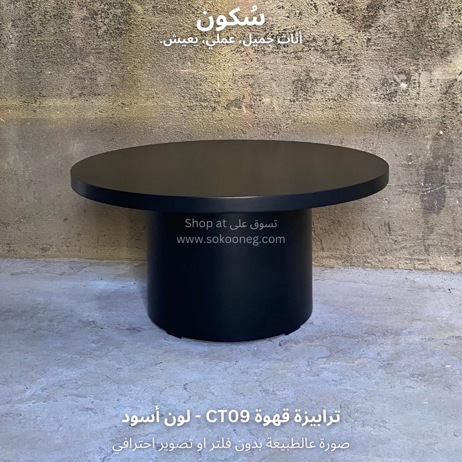 ترابيزة قهوة دائرية بتصميم أنيق مع قاعدة دائرية، تضفي لمسة من الانسيابية والجمال على المساحة.