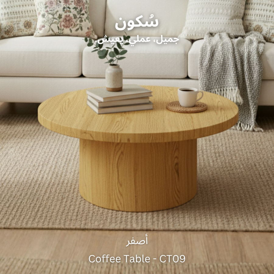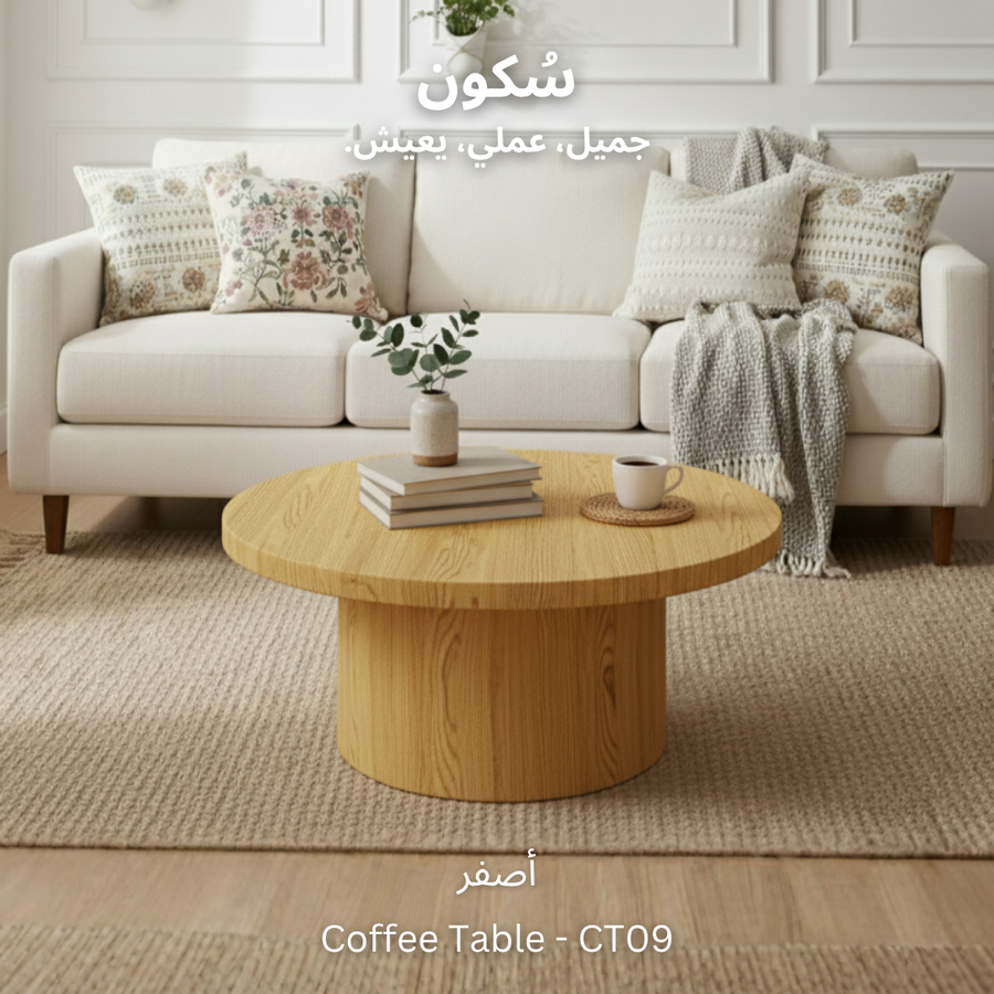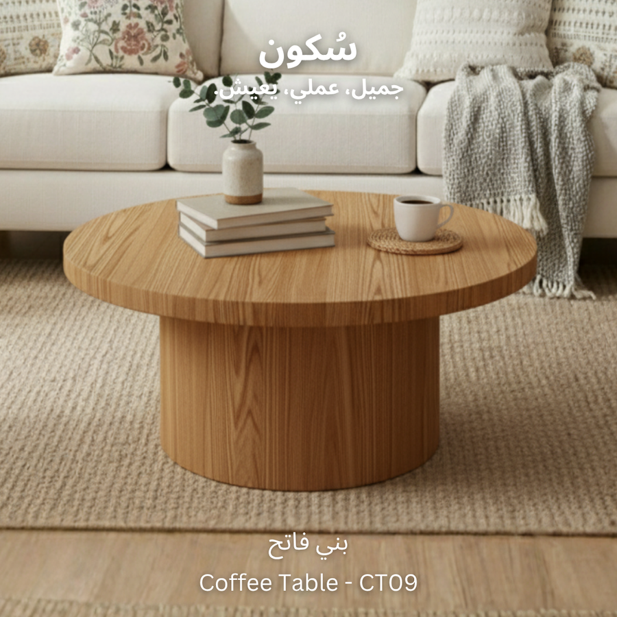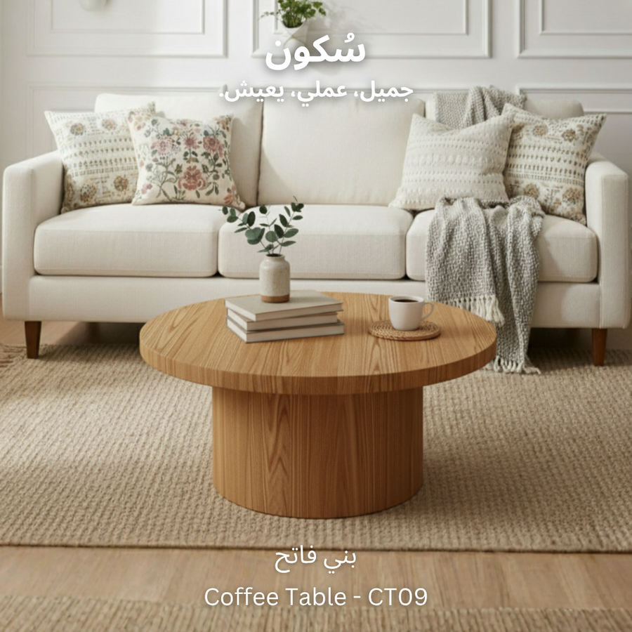 ترابيزة قهوة دائرية بتصميم أنيق مع قاعدة دائرية، تضفي لمسة من الانسيابية والجمال على المساحة.