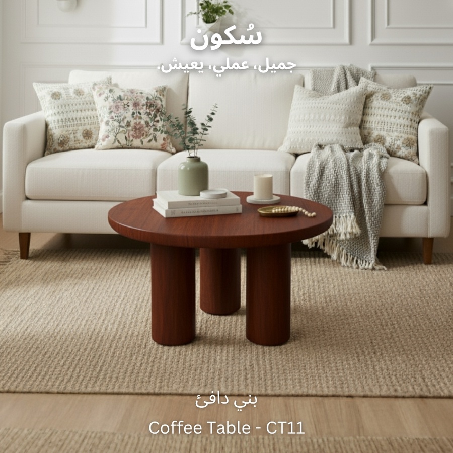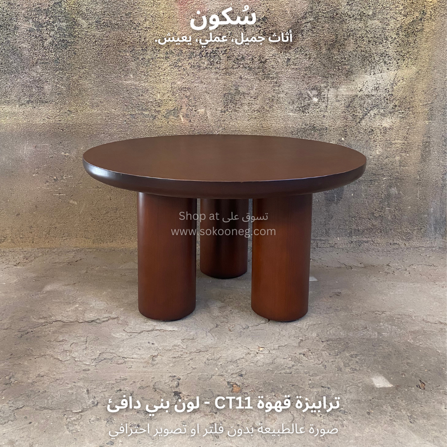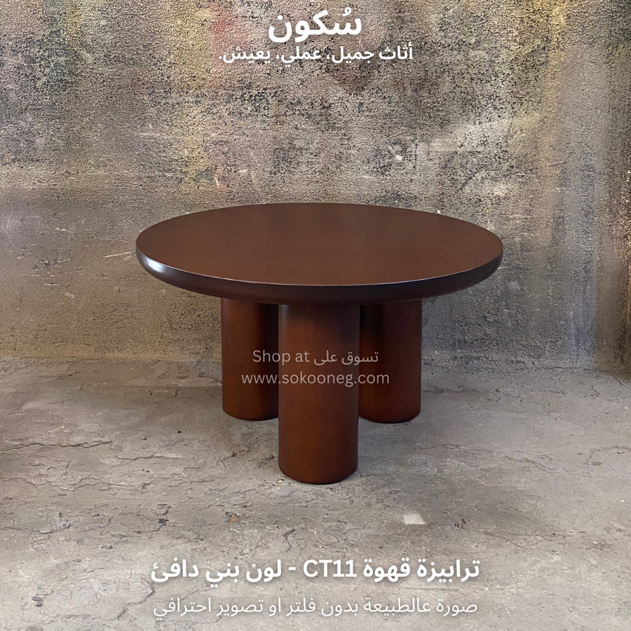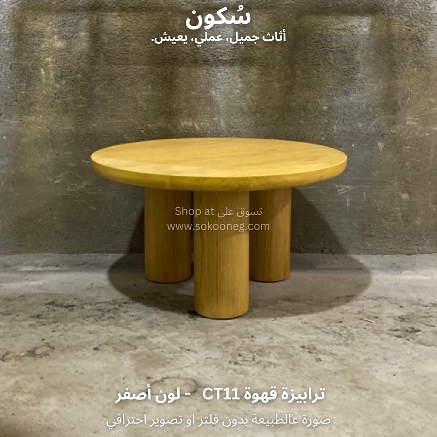 ترابيزة قهوة مصنوعة من الخشب الطبيعي، مع سطح سميك وأرجل سميكة تضيف لمسة من القوة والأناقة لأي غرفة.