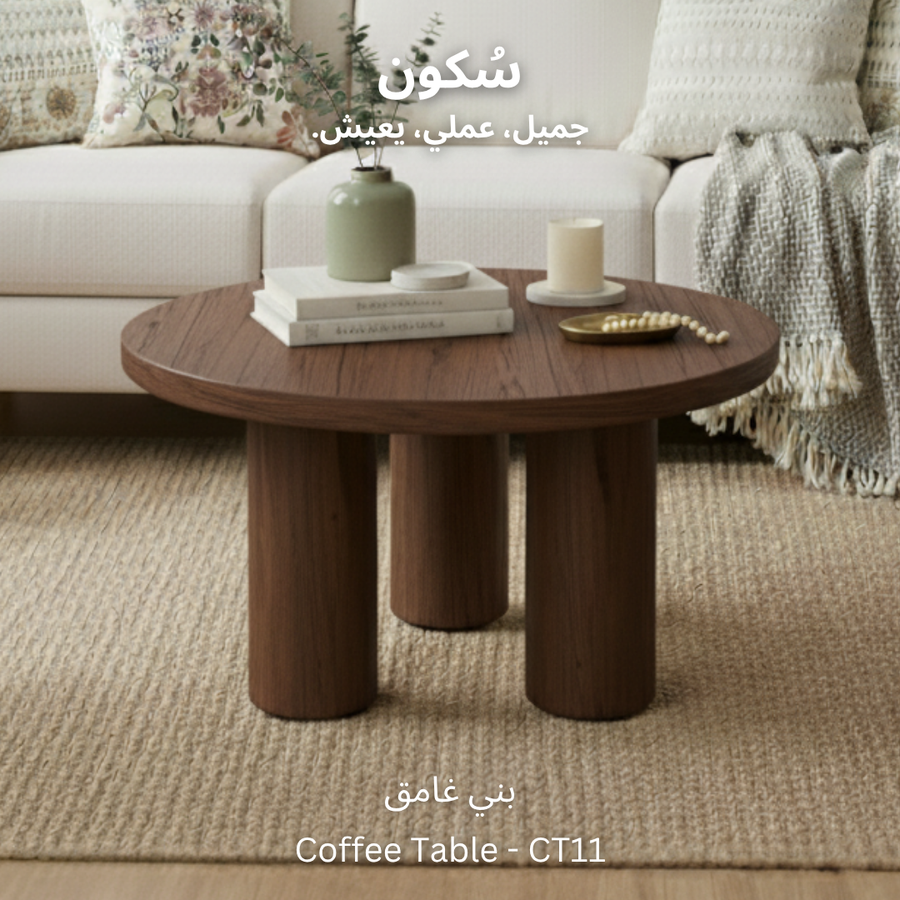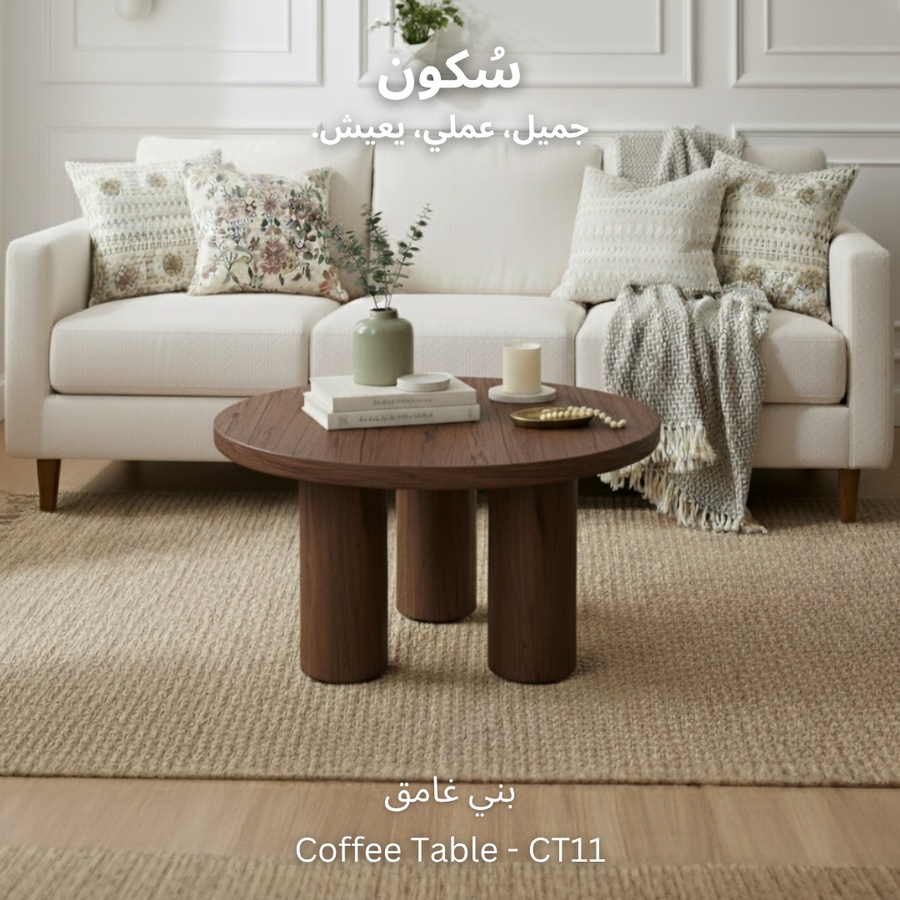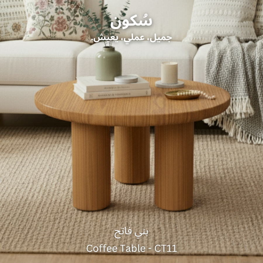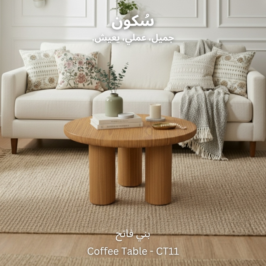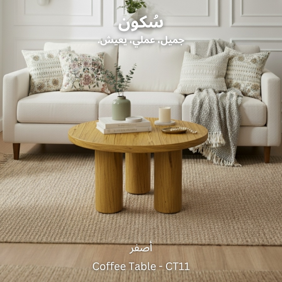 ترابيزة قهوة مصنوعة من الخشب الطبيعي، مع سطح سميك وأرجل سميكة تضيف لمسة من القوة والأناقة لأي غرفة.