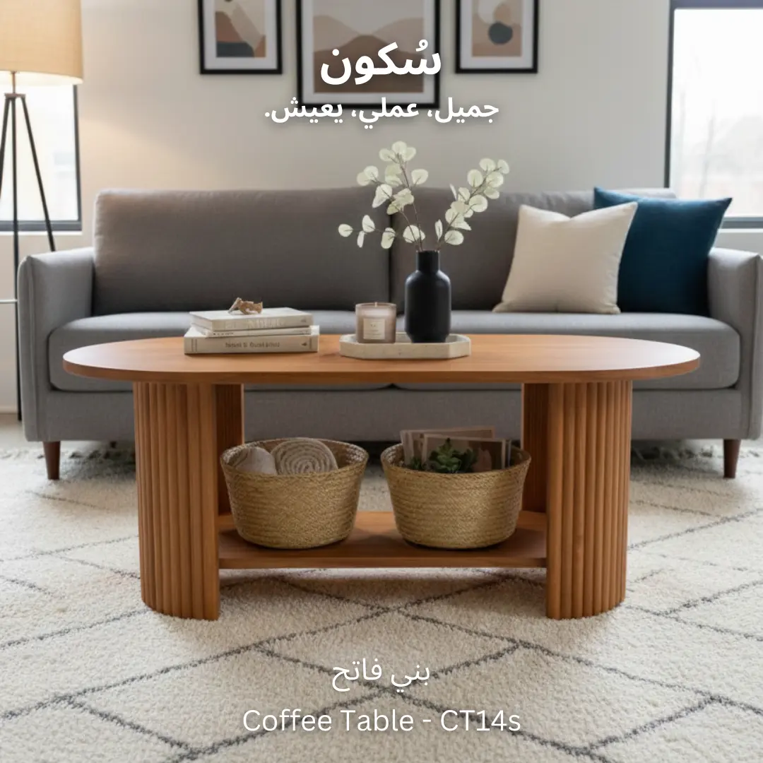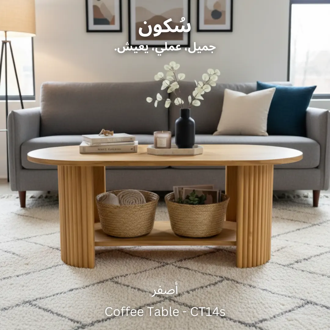 ترابيزة قهوة عملية وعصرية، مع رف سفلي مثالي لترتيب الكتب، المجلات، أو عرض القطع الديكورية الصغيرة.
