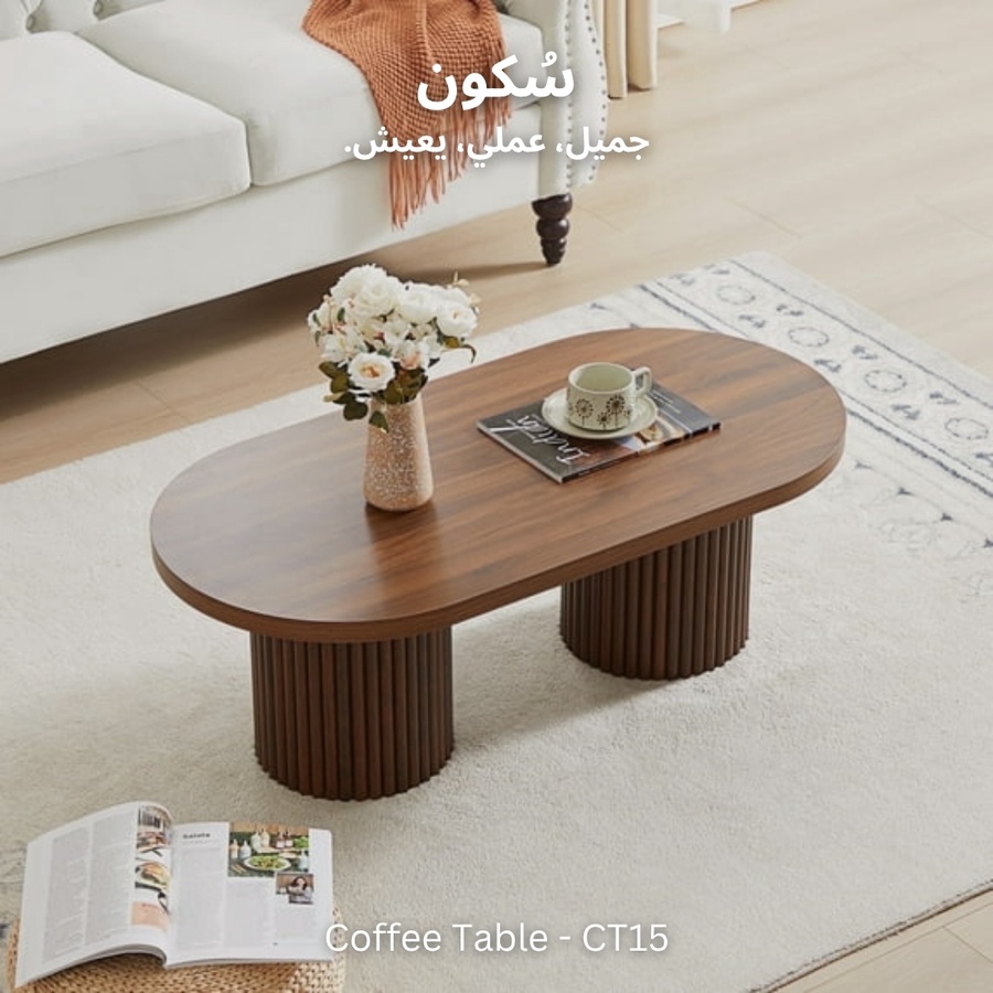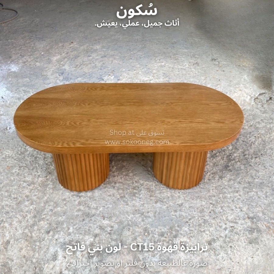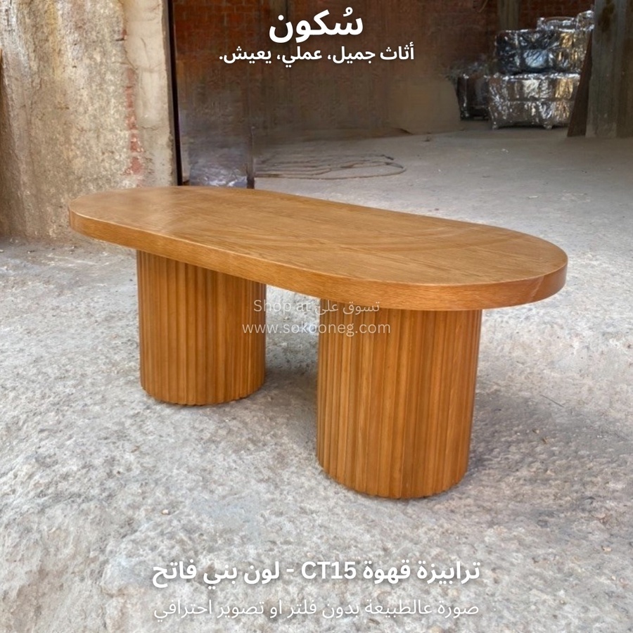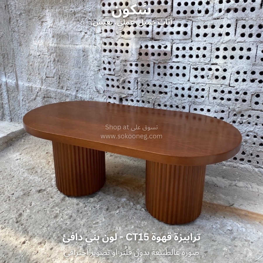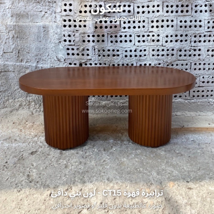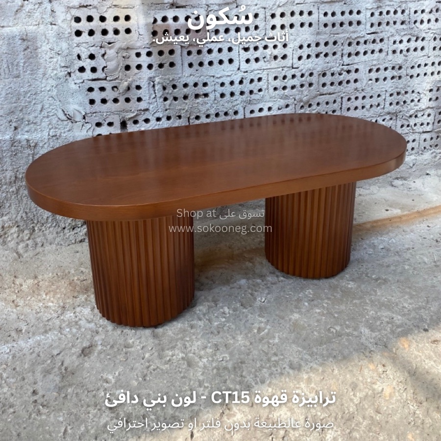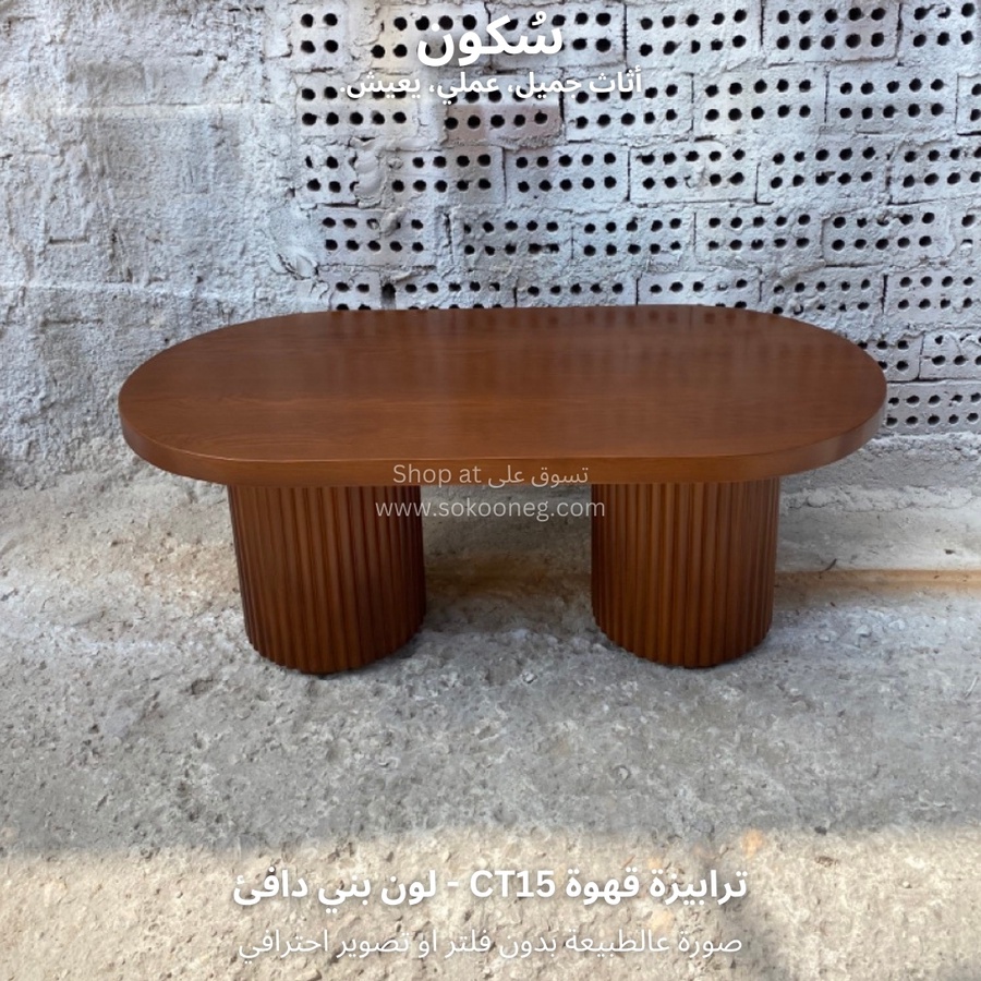 ترابيزة قهوة بتصميم عصري مع قاعدتين دائريتين، تضفي لمسة من الأناقة والجمال على أي غرفة.