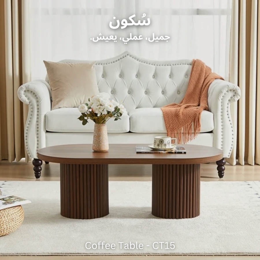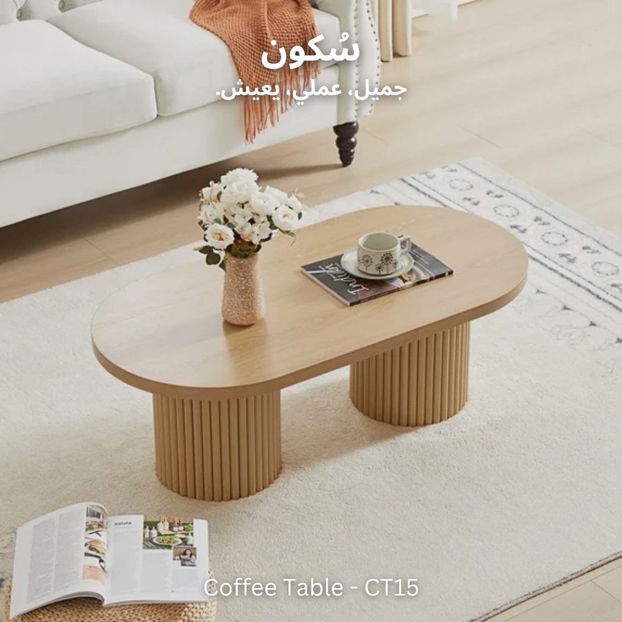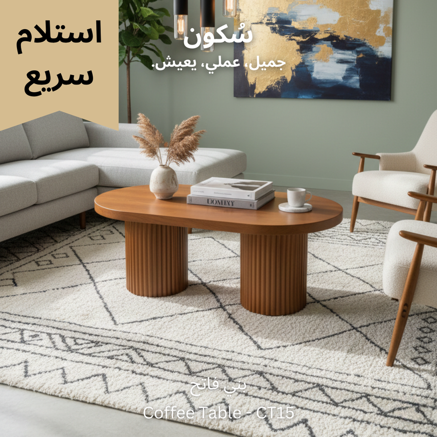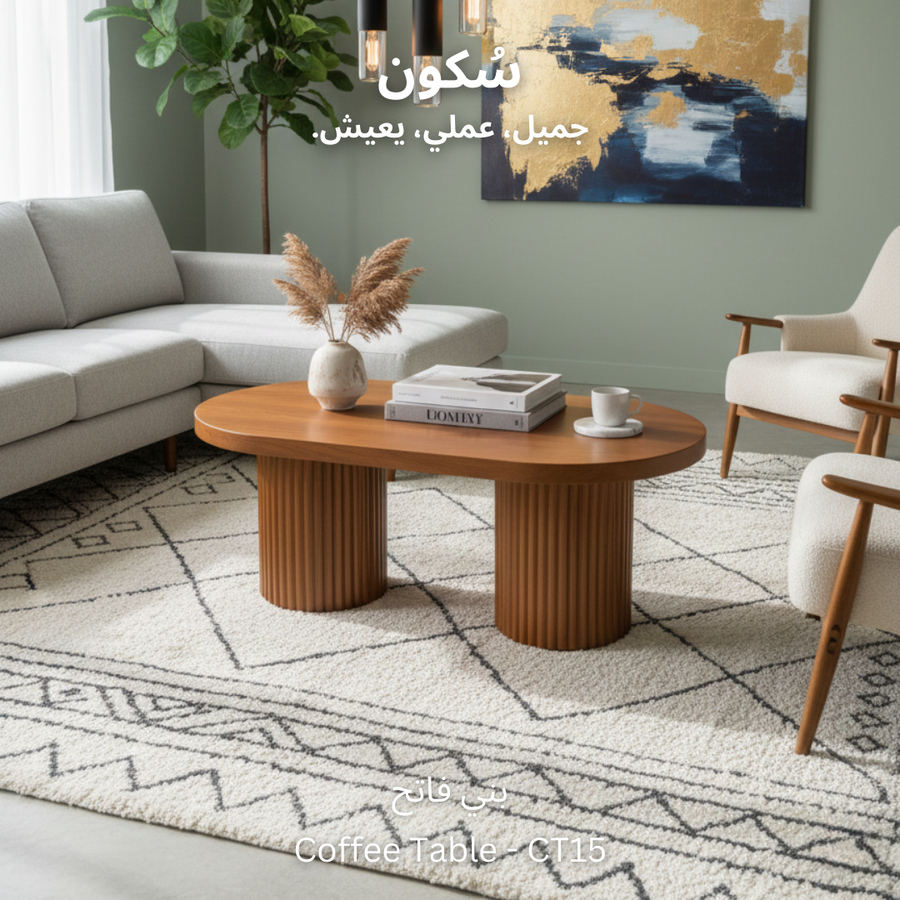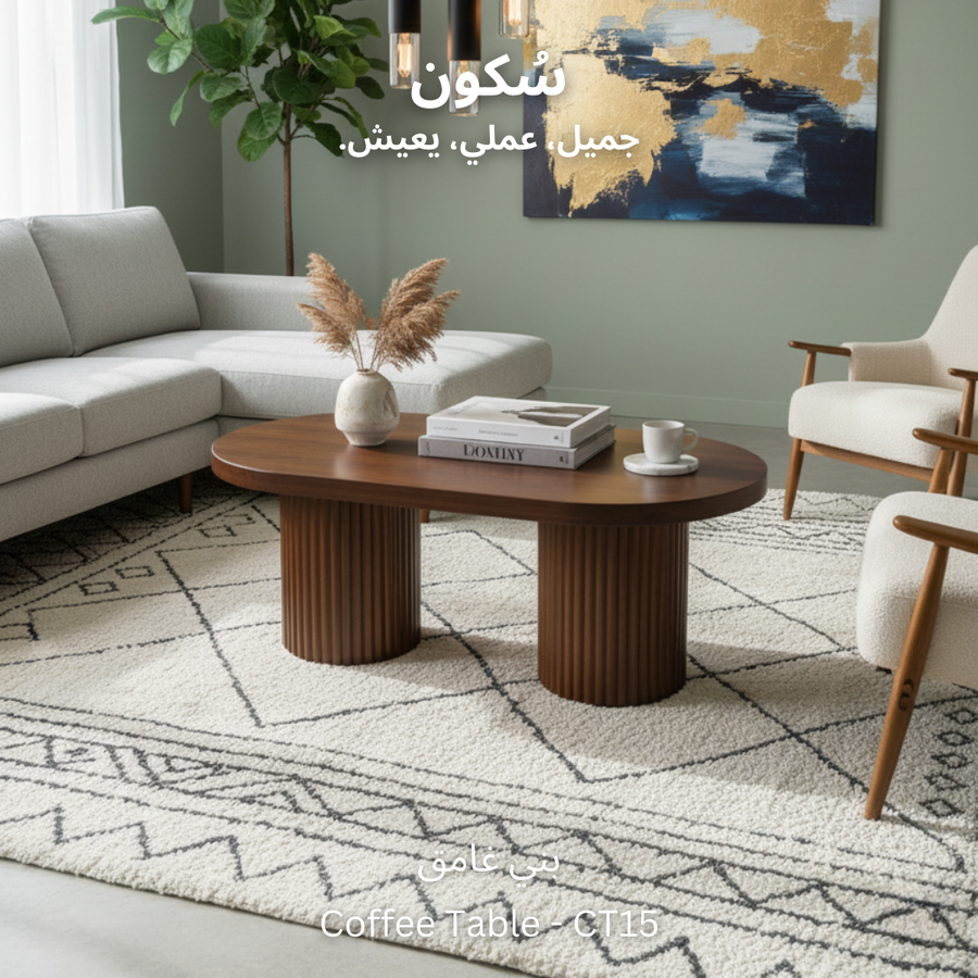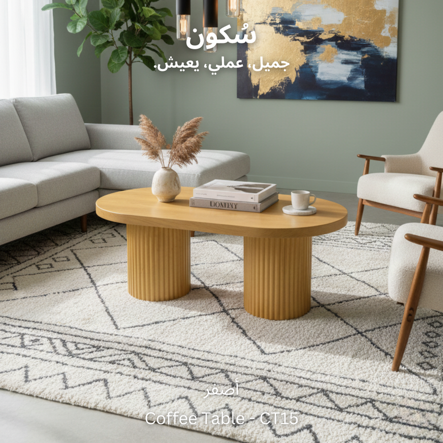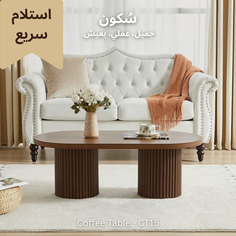 ترابيزة قهوة بتصميم عصري مع قاعدتين دائريتين، تضفي لمسة من الأناقة والجمال على أي غرفة.