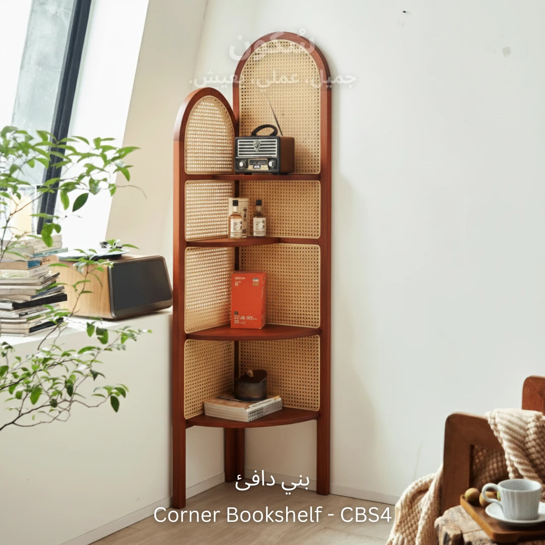 تصميم فاخر يجمع بين جمال خشب الزان الأحمر وجوانب الكانيه، مع أرفف بقشرة الأرو لتخزين وعرض مقتنياتك.