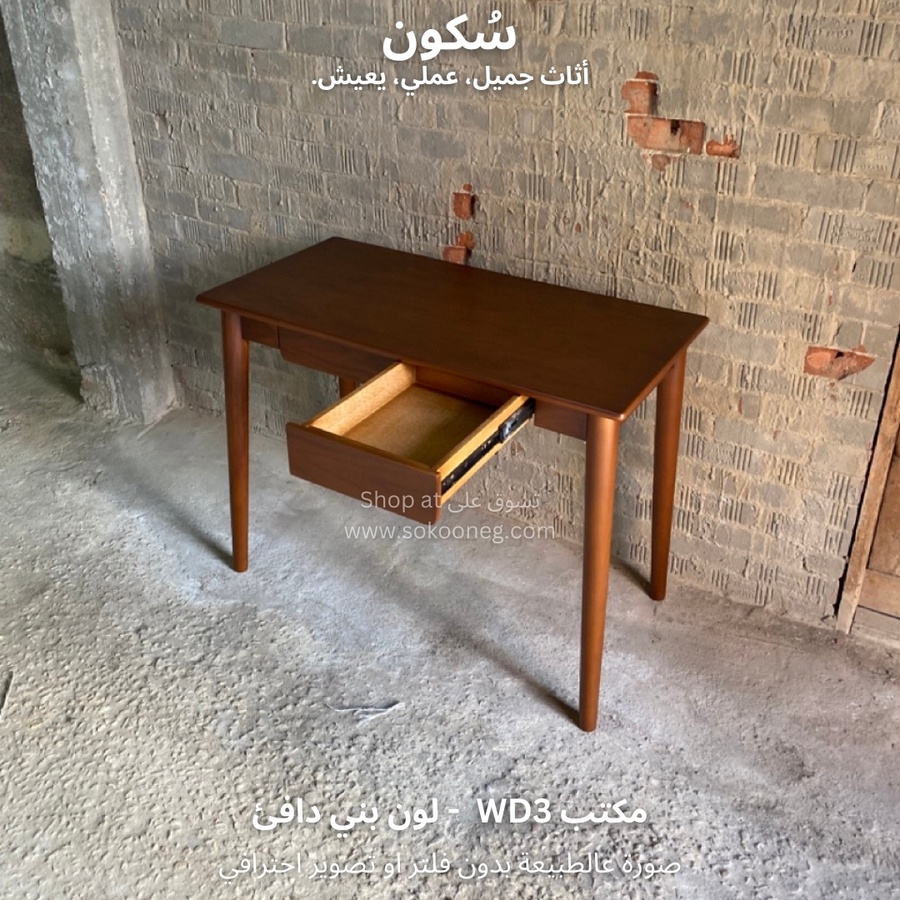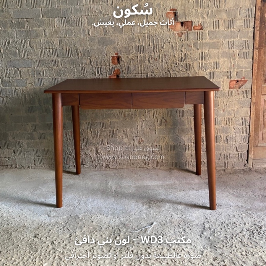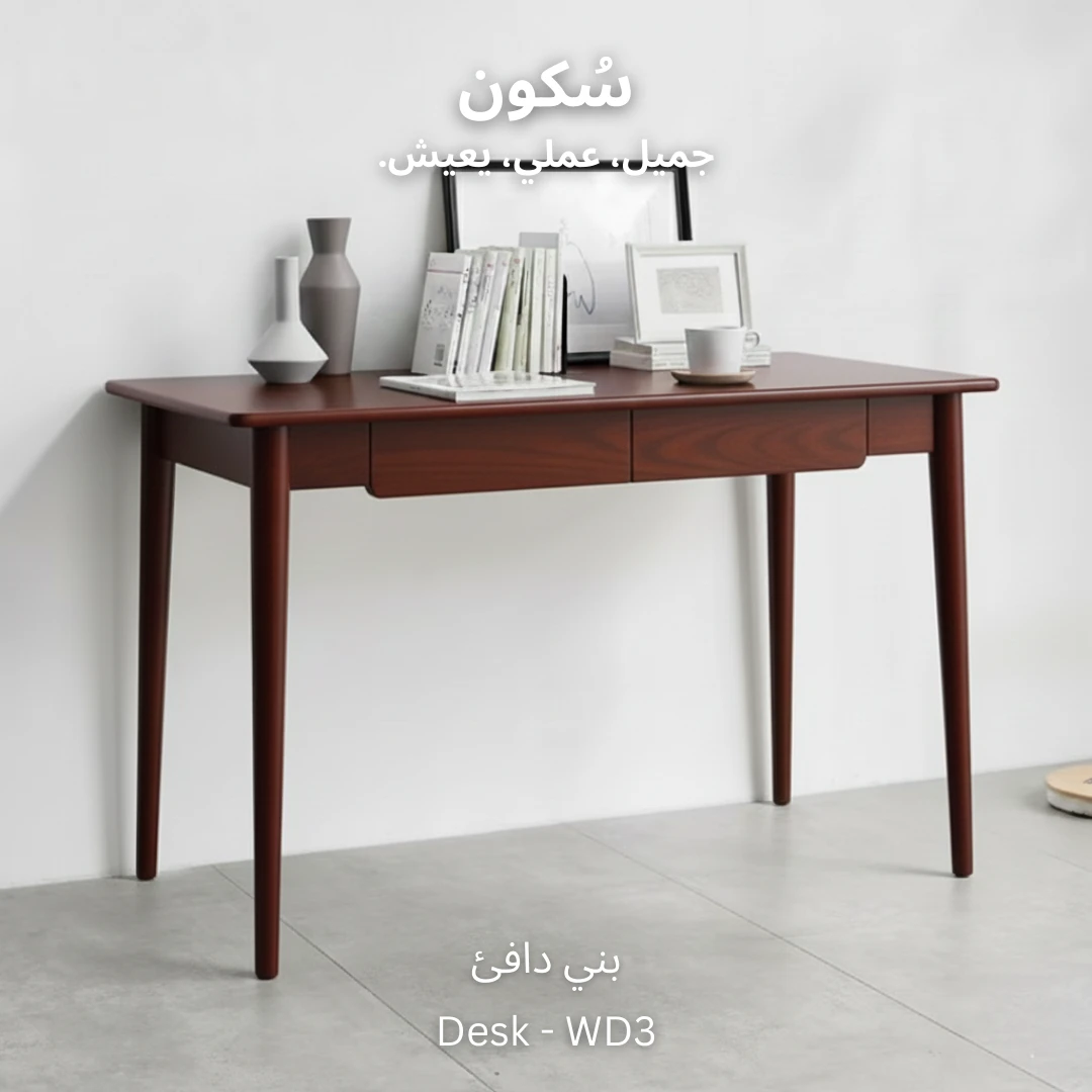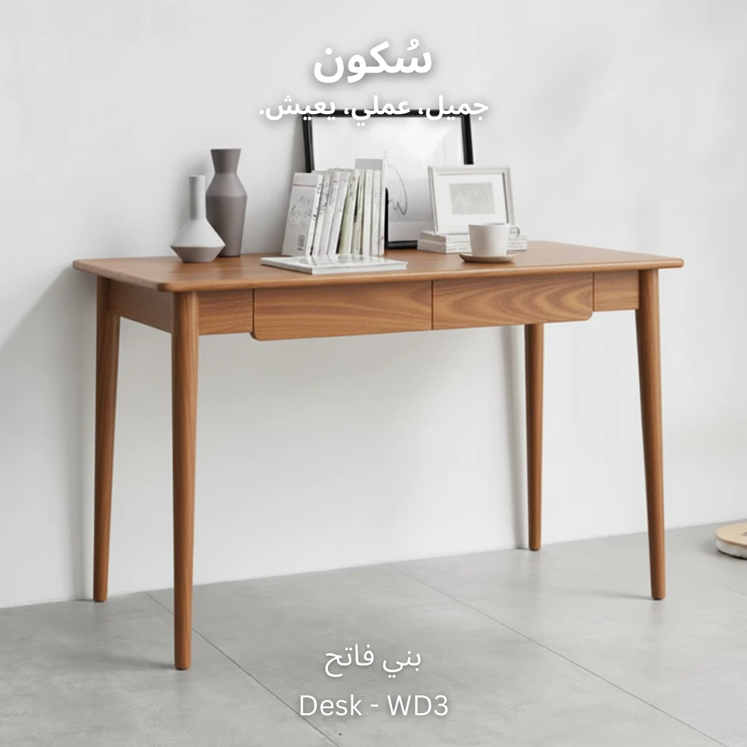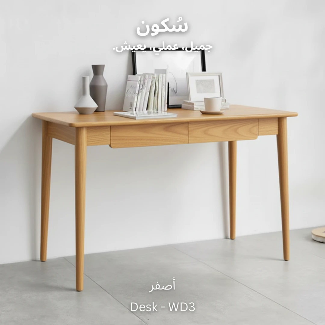 مكتب خشبي بأربعة أرجل ودرجين لتنظيم الأغراض، تصميم عملي يناسب جميع الأذواق ويضيف لمسة من الأناقة.