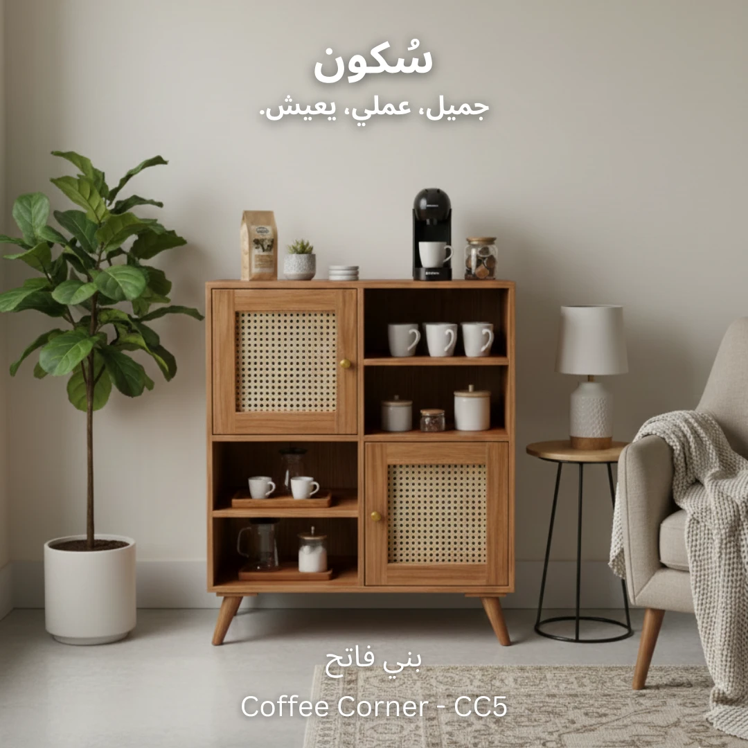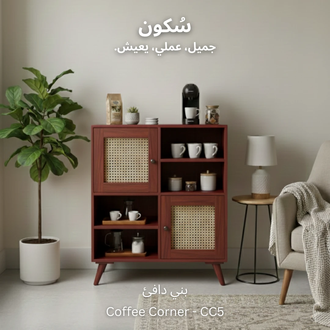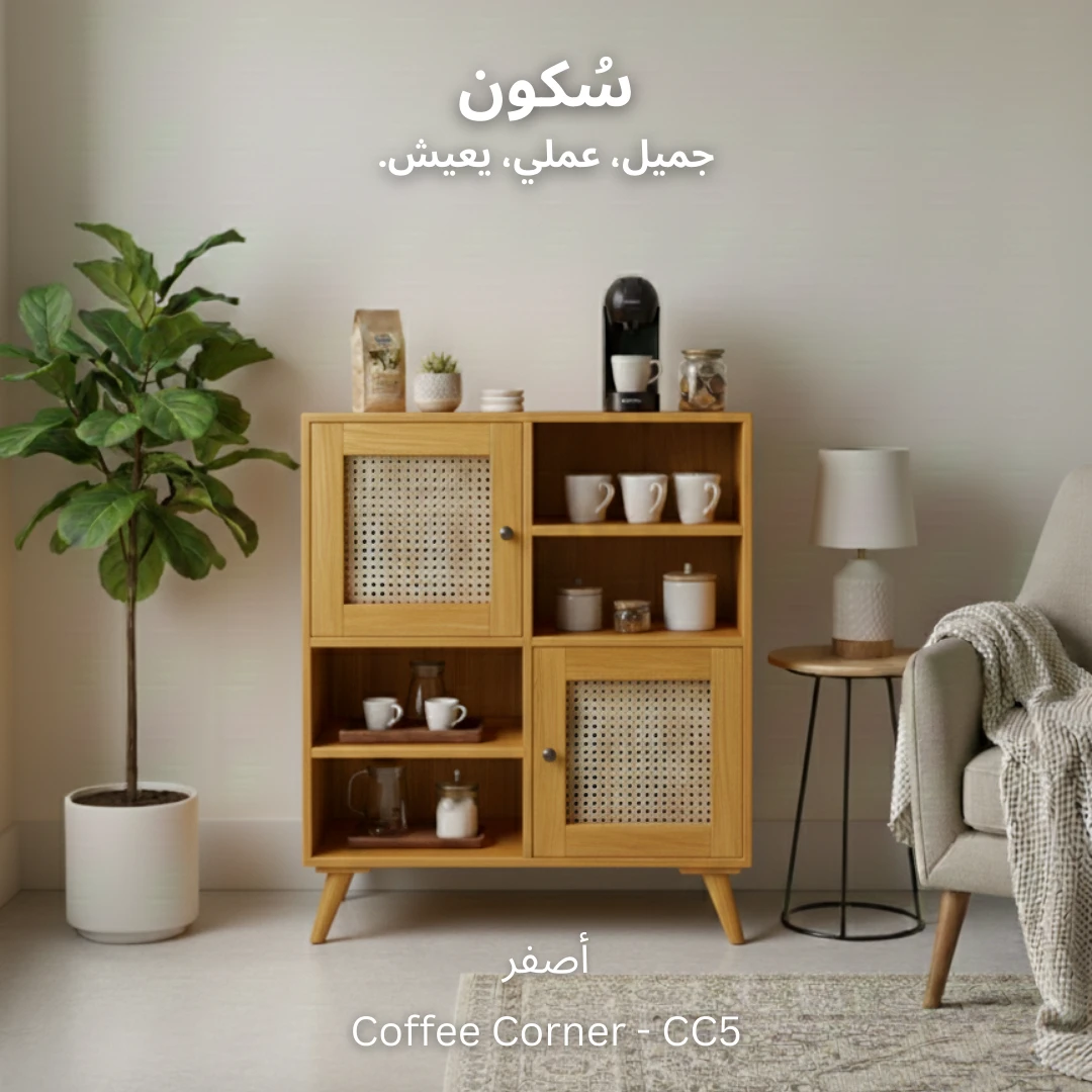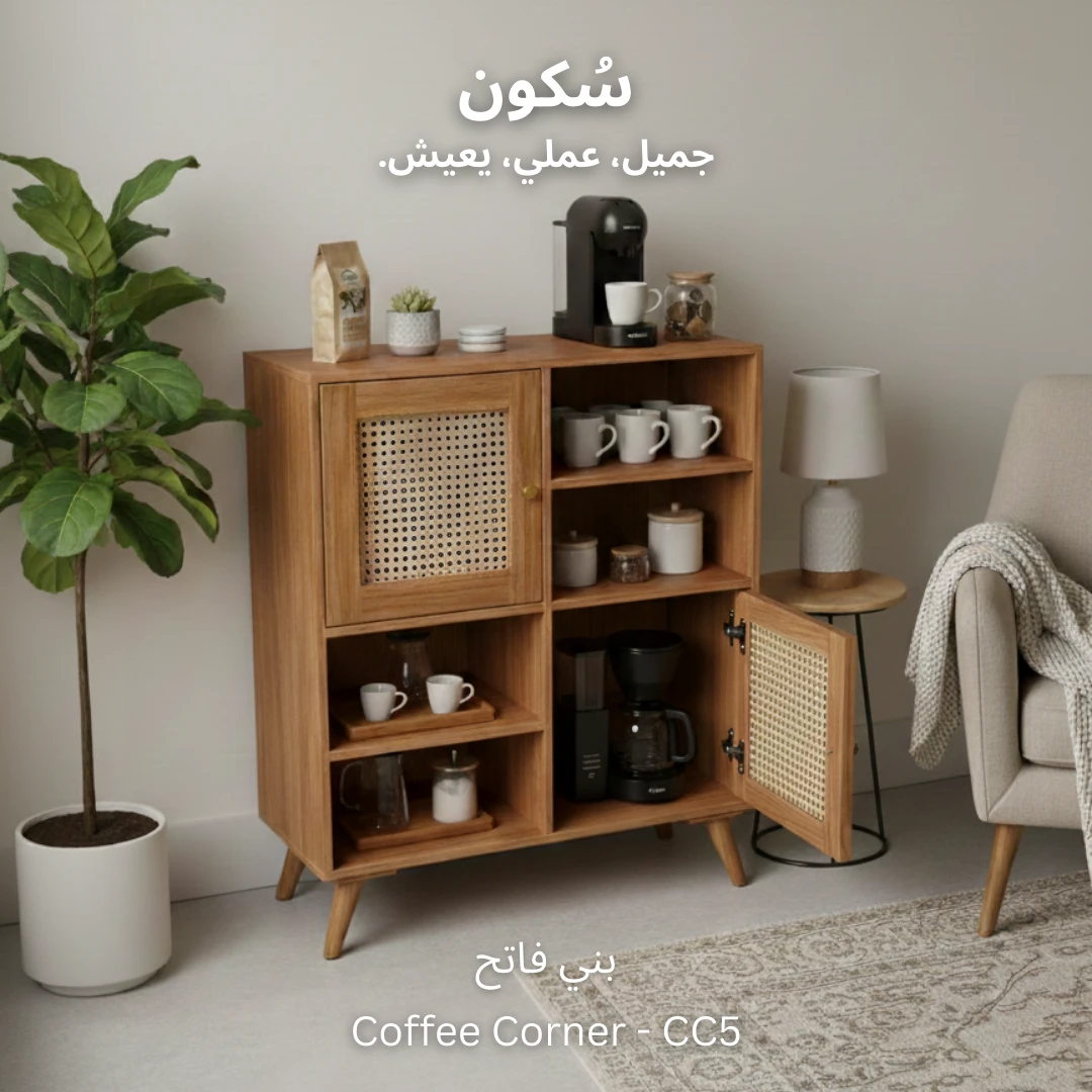 يجمع هذا التصميم الذكي بين درفتين للتخزين، ٤ ارفف مفتوحة للوصول السريع ولتخزين مستلزمات قهوتك.
