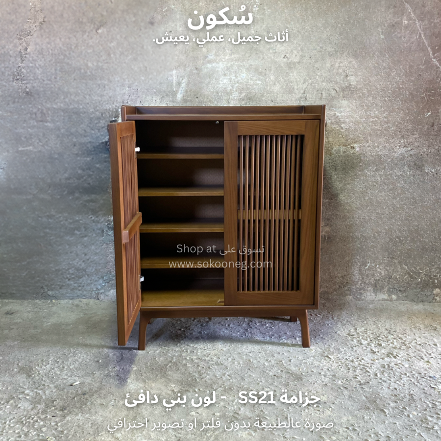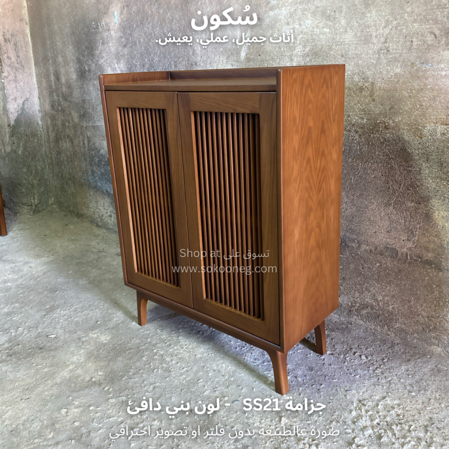 جزامة أنيقة ب ٢ درف من الخشب الطبيعي، تجمع بين التصميم العصري والوظيفة العملية.