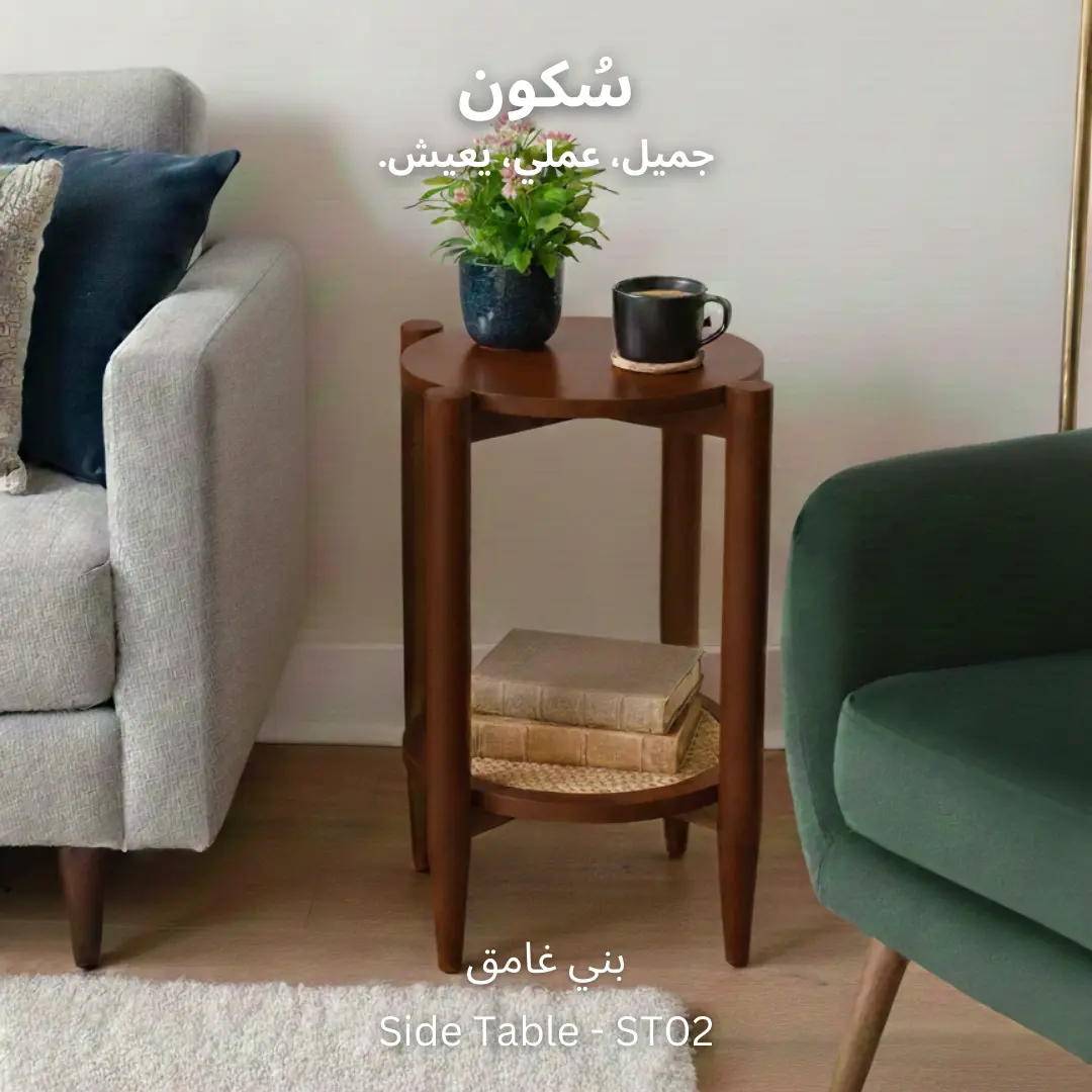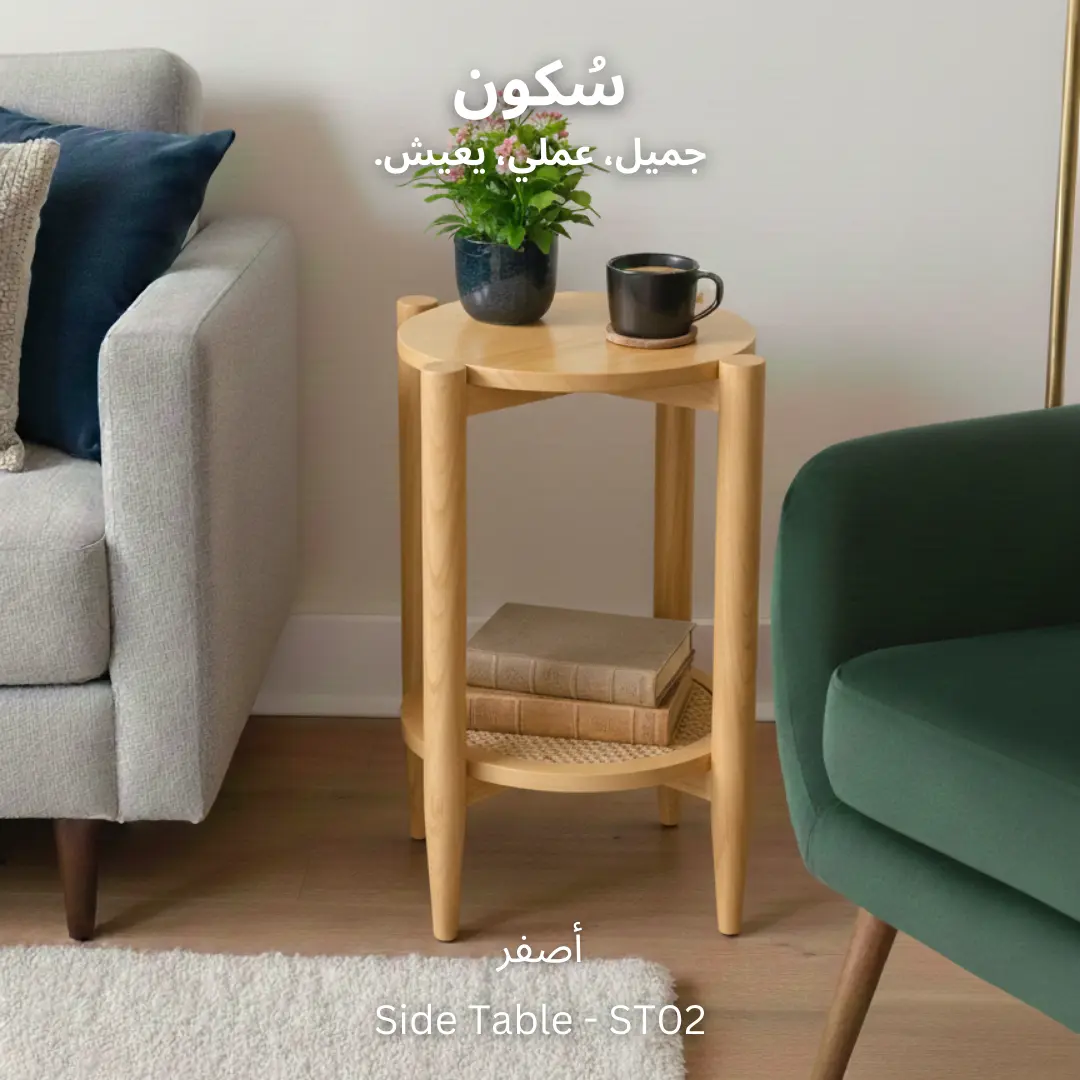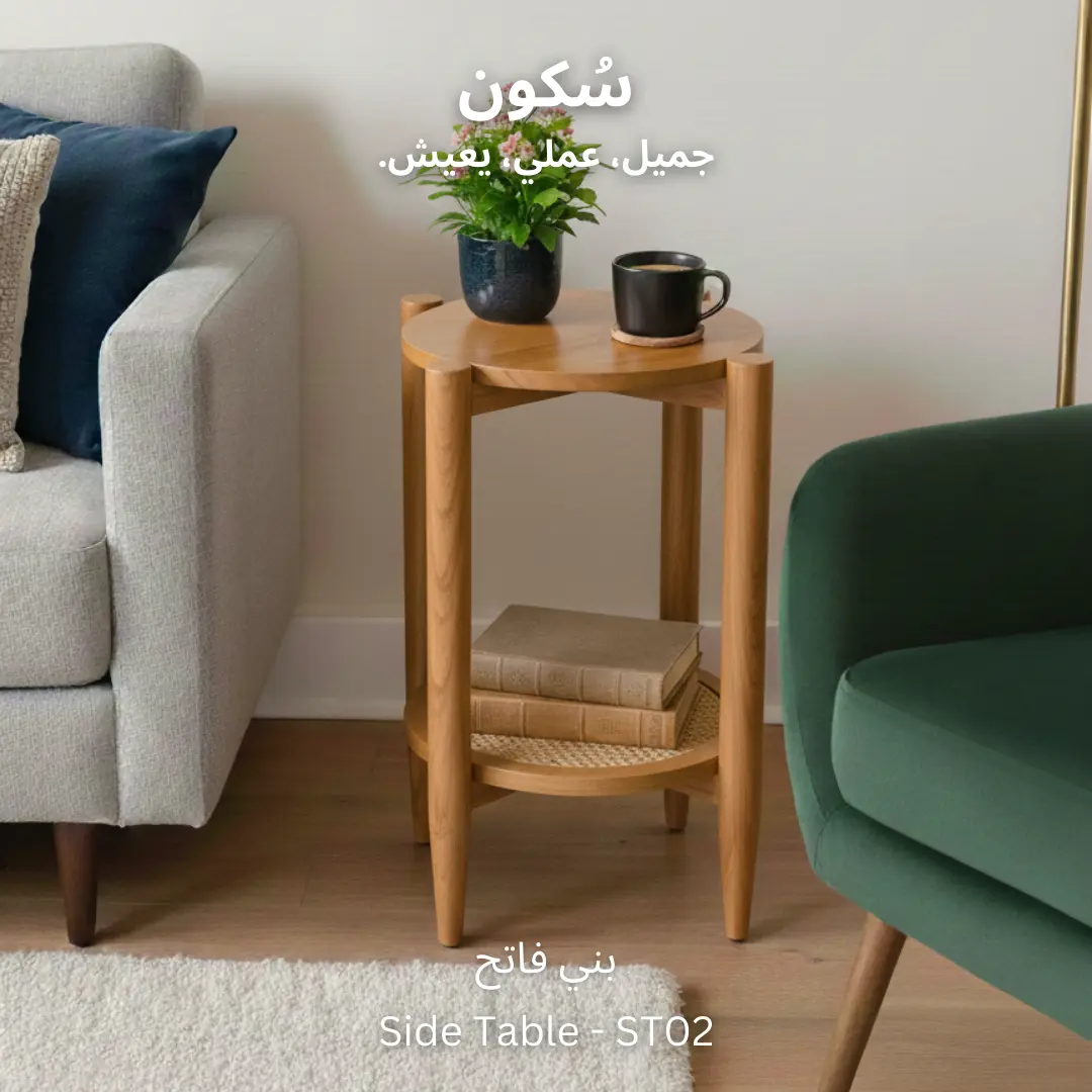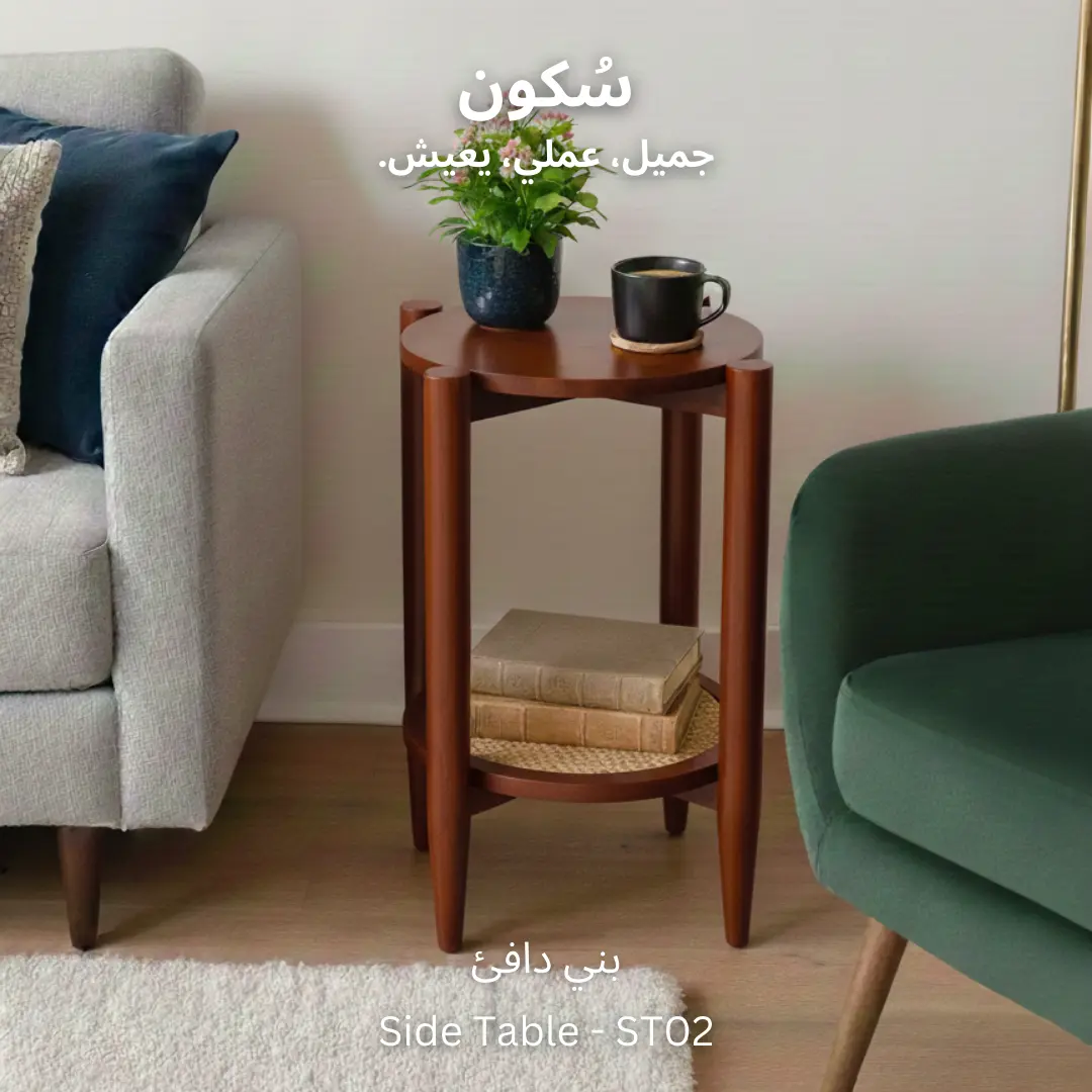 ترابيزة جانبية بأربع أرجل قوية، سطح ورف من الكانيه، مصنوعة من الخشب الطبيعي، توفر لك مساحة تخزين مثالية بينما تضفي لمسة من الجمال والعملية على الغرفة.