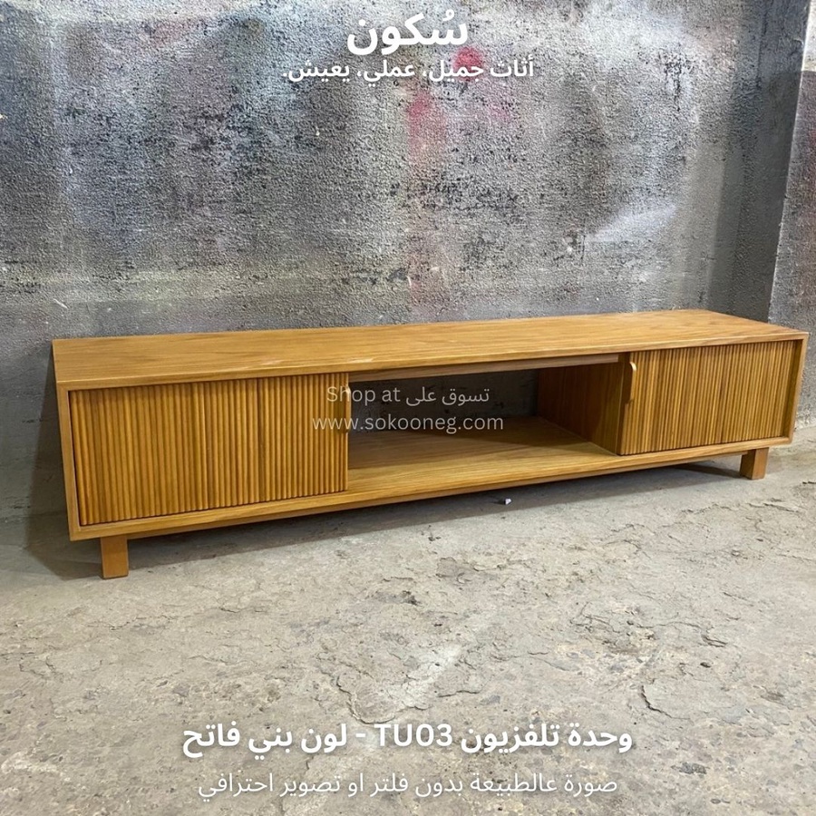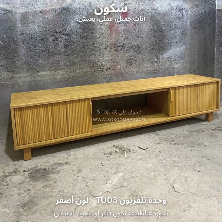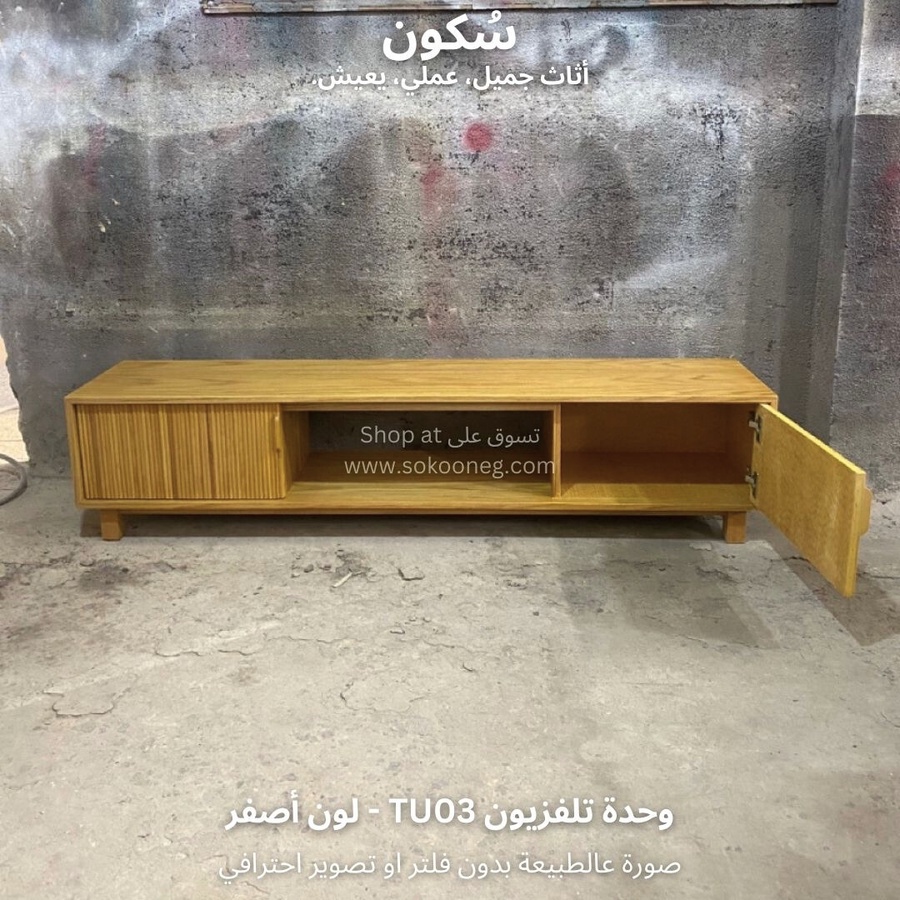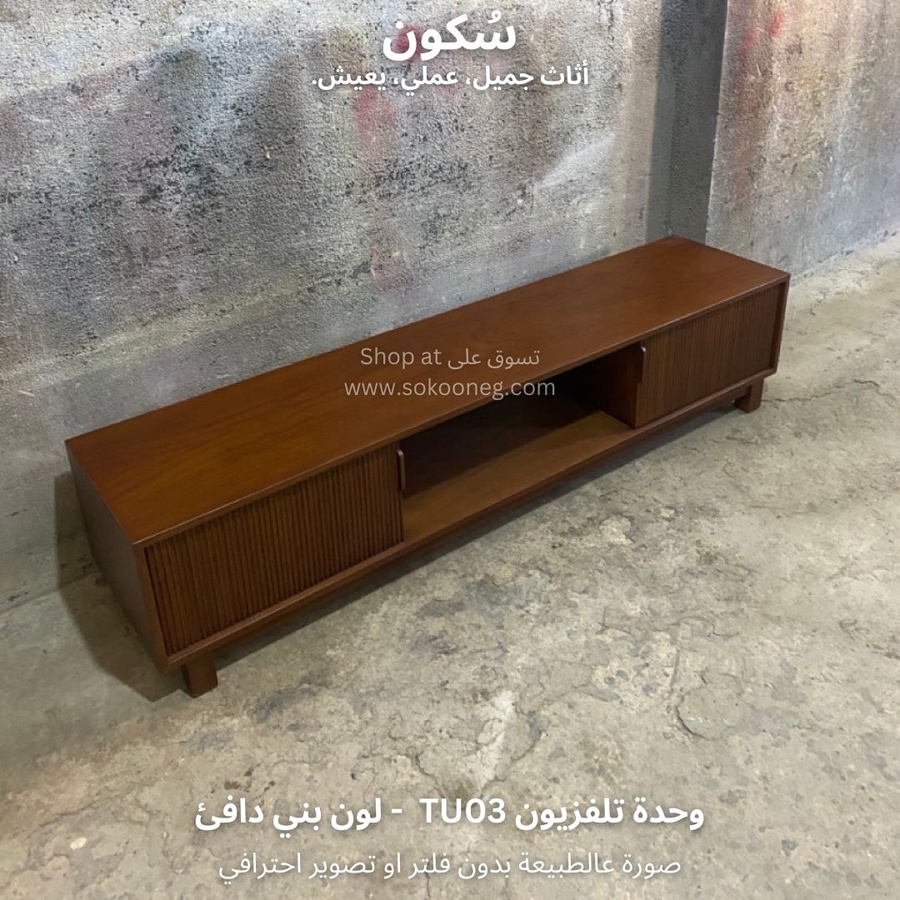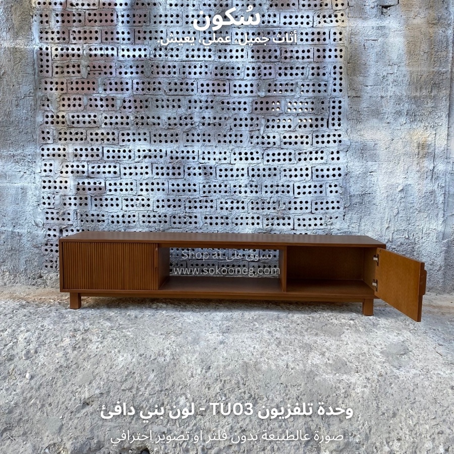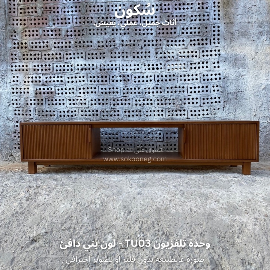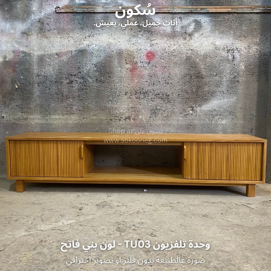 وحدة تلفزيون مع سطح واسع للاستخدام اليومي، تحتوي على بابين لتخزين الأغراض ورف واسع يوفر لك الوصول السريع للأغراض أو الأجهزة الإلكترونية.
