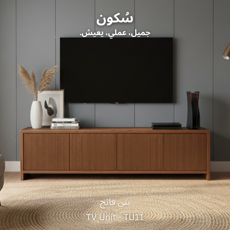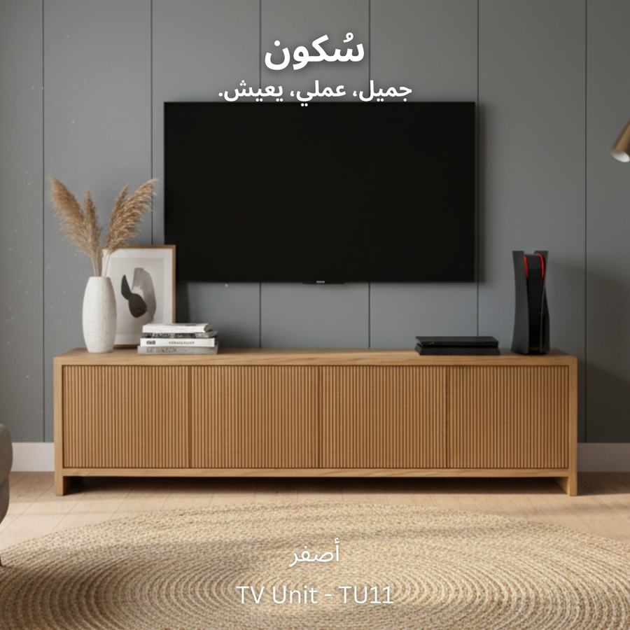 وحدة تلفزيون بلمسات فاخرة من خشب الزان، سطح واسع يجمع بين الأناقة والعملية للاستخدام اليومي والديكور، مع أربعة أبواب توفر لك تخزينًا مرنًا وتنظيمًا لأغراضك بأحجام متنوعة.