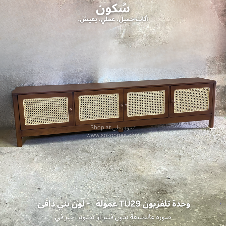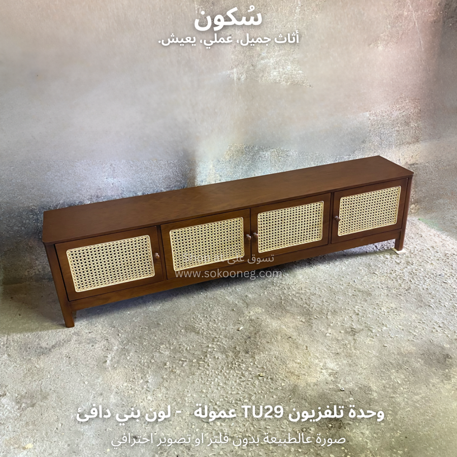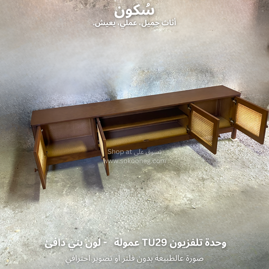 وحدة تلفزيون مع سطح واسع للاستخدام اليومي، تحتوي على ٢ باب كانيه و ٢رف لتخزين الأغراض والديكور.